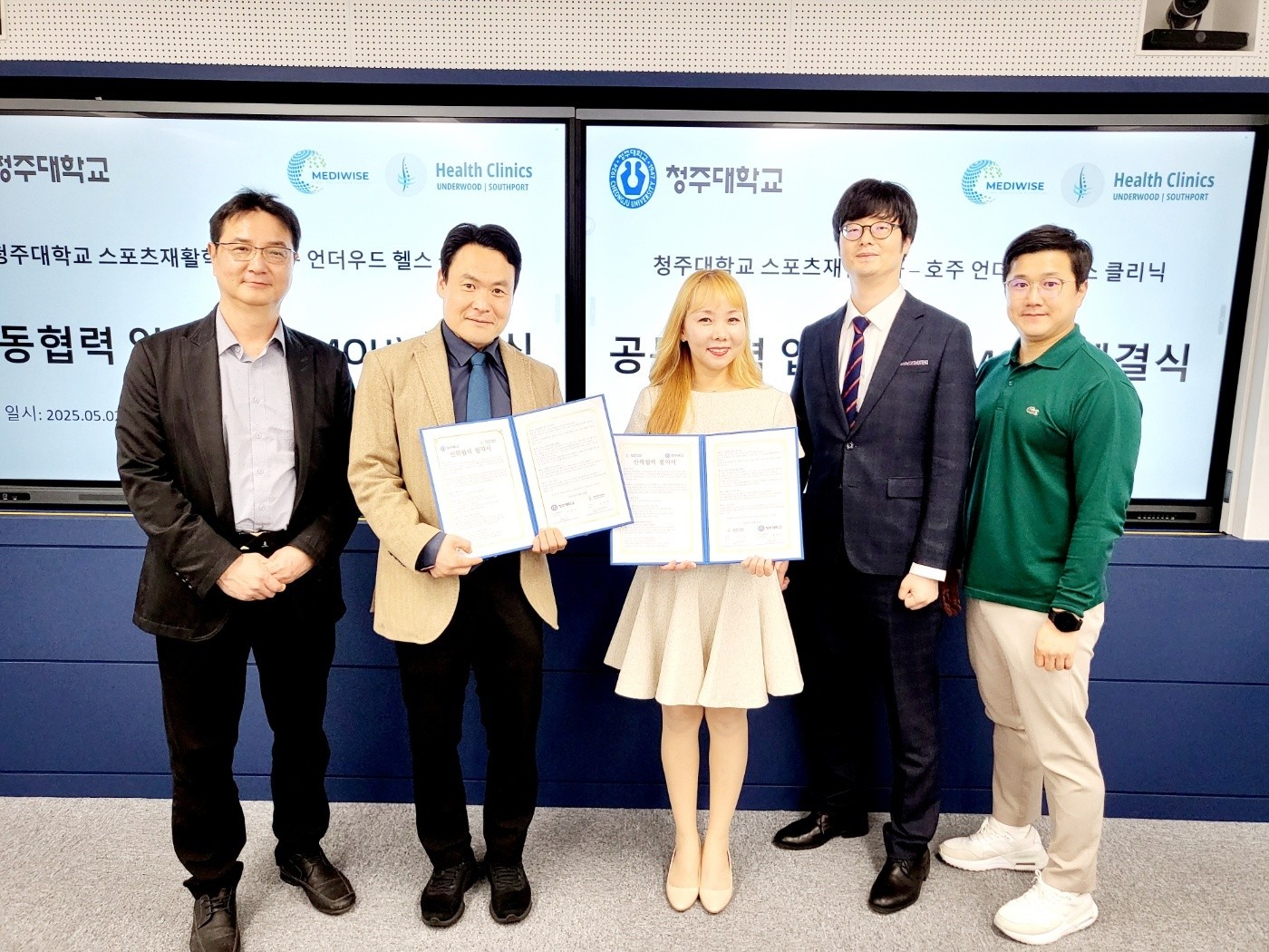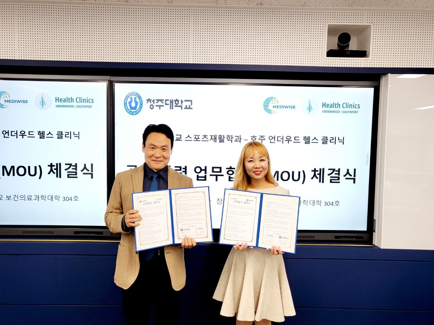 청주대 스포츠재활학과와 호주 언더우드 헬스클리닉 간 교육 및 임상 실습, 공동연구, 인적교류 기반 등의 상호발전을 위한 양해각서(MOU)를 체결하였습니다.