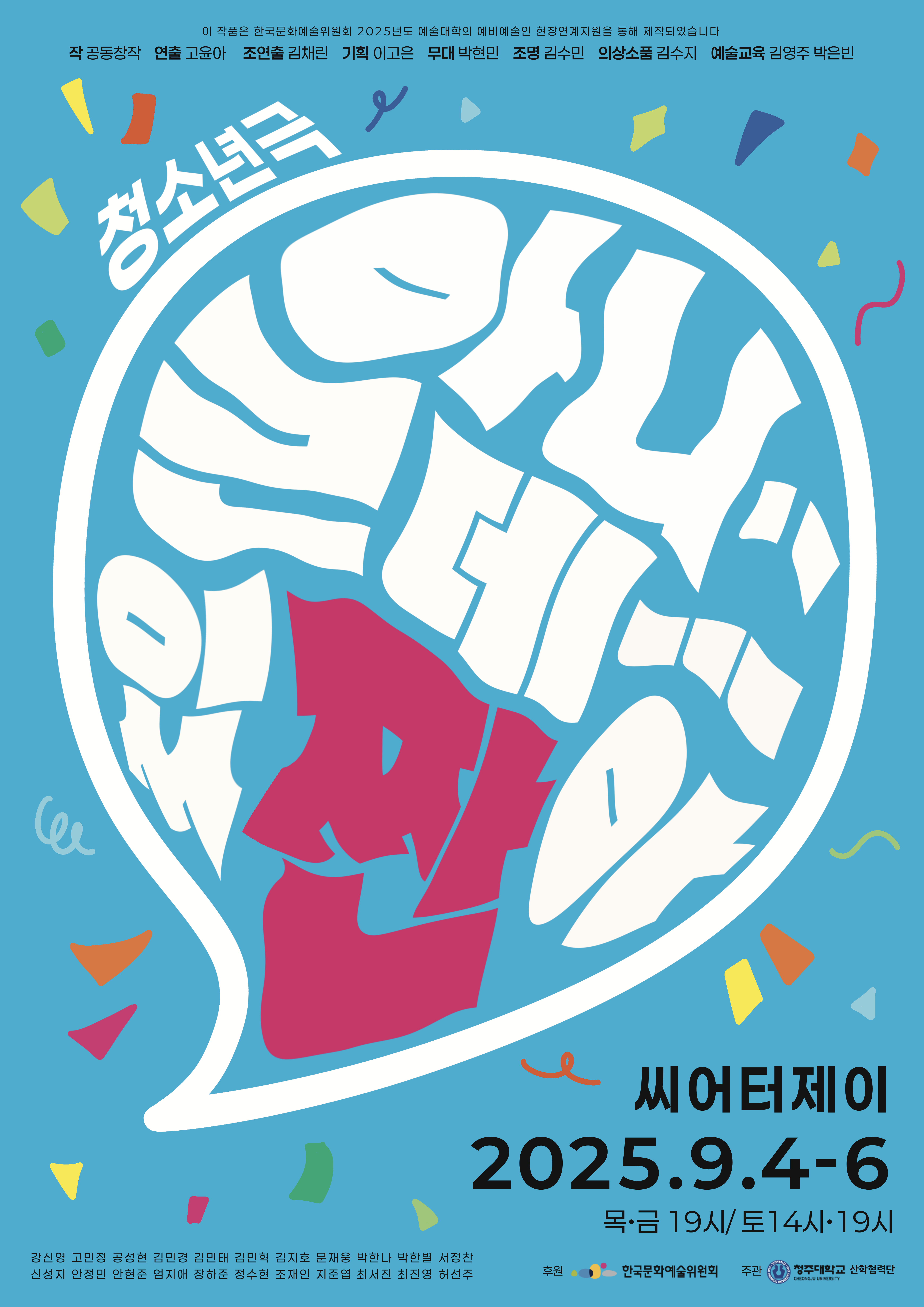 | 제목 | 2025년 한국문화예술위원회 예비예술인 연계사업_청소년극 [아니근데있짠아] 공연합니다. |